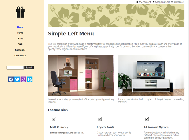 If you want a website design transferred from an existing website or a 3rd party template, then please contact us for a quote to transfer your design,